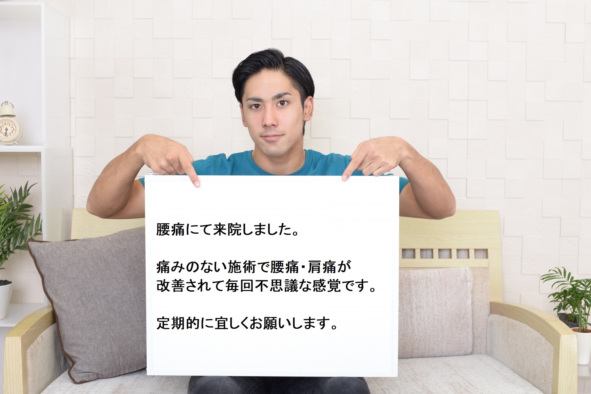 痛みのない施術で腰痛・肩痛が改善されて毎回不思議な感覚です。