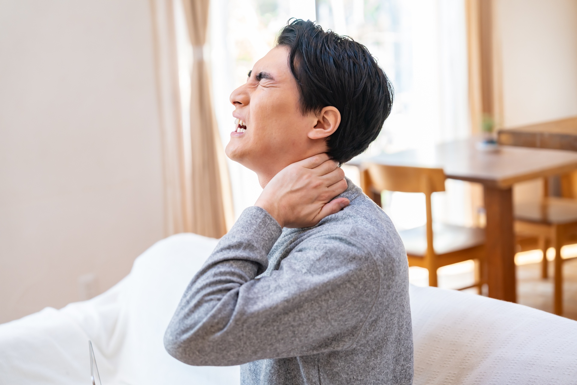 痛みは前傾(前かがみ)や後屈、左への傾きや回旋動作で特にひどくなるとのことでした。過去には頚椎症と診断されたことがあるため、不安のある状態でした。